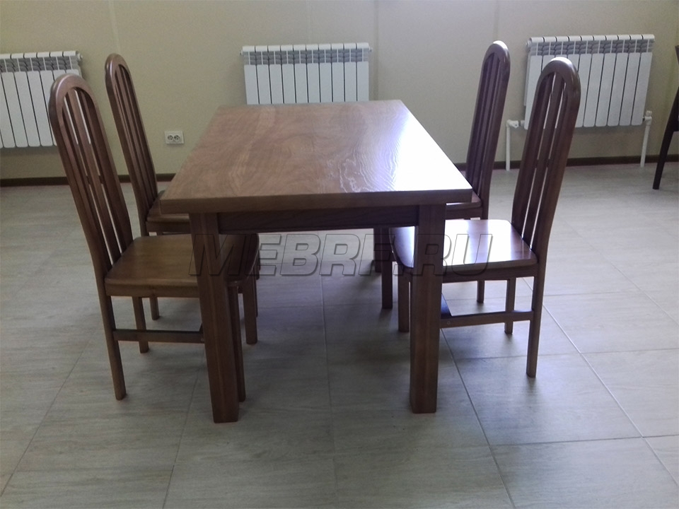 Недорогой комплект стол + 4 стула из массива дерева. Можно использовать в гостиных, кухнях, столовых, а также ресторанах и кафе.